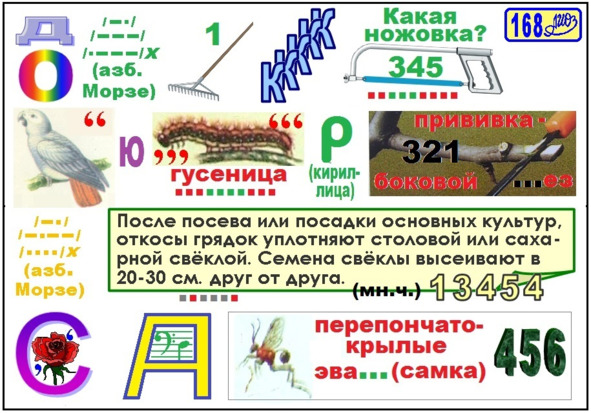 17). Овощные культуры. Уплотнённые (ребусы №161 … №168) и повторные (ребусы №169 … №170) посевы.