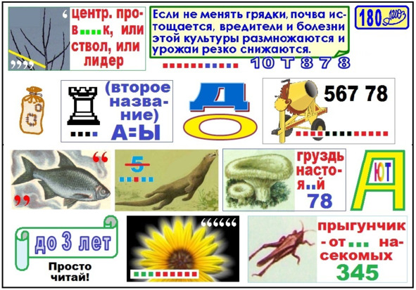 Читайте ответы к ребусам и растите правильный урожай. А осенью, получив весомый результат, Вам, вероятно, захочется от ответов перейти к разгадыванию ребусов, являющихся руководством по выращиванию богатого урожая.