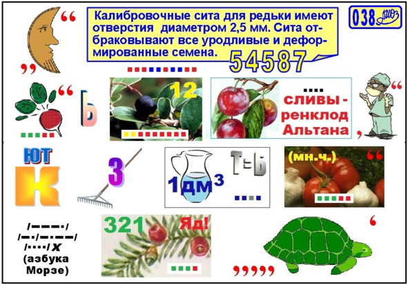 4). Биологические особенности овощных культур. Предпосевная подготовка семян. Калибровка и отбор по плотности (ребусы №031 … №040).