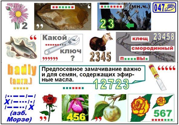 5). Биологические особенности овощных культур. Предпосевная подготовка семян. Прогревание (ребусы №041 … №046) и замачивание (ребусы №047 … №050).
