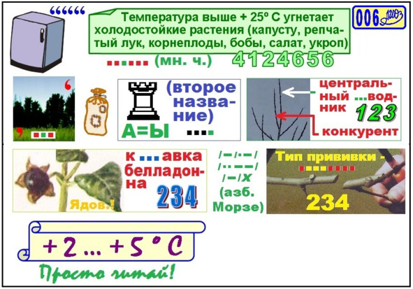 1). Биологические особенности овощных культур (ребусы №001 … №003). Отношение к теплу (ребусы №004 … №010).
