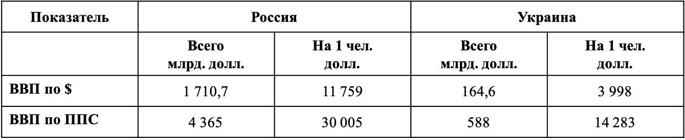 Таблица 3. Данные по ВВП России и Украины в 2021 году. (долл.)