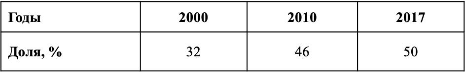 Таблица 1. Данные по росту доли общественного богатства, принадлежащего 1% населения планеты.