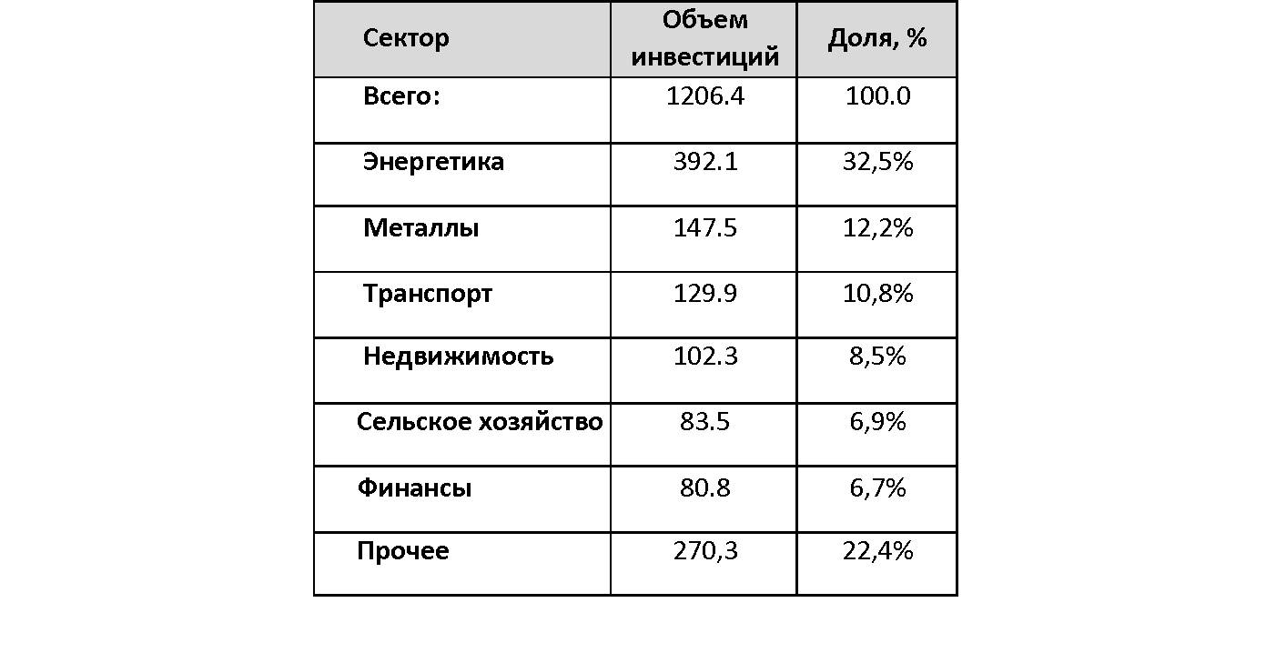 Табл. 12. Отраслевая структура китайских иностранных инвестиций в мировую экономику в 2005-2019 гг. (млрд. долл. США) [72]