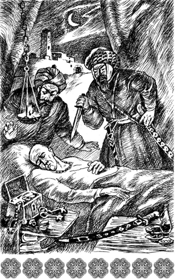 27Распространённая казнь в странах востока. Султан присылал провинившемуся чиновнику шёлковый шнур, которым его душили. Знатных турок лишали жизни именно удушением, потому что считалось, что нельзя было проливать кровь знати.