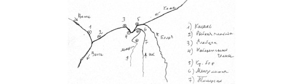 Схема окрестностей усадьбы в Нижнем Тимергане