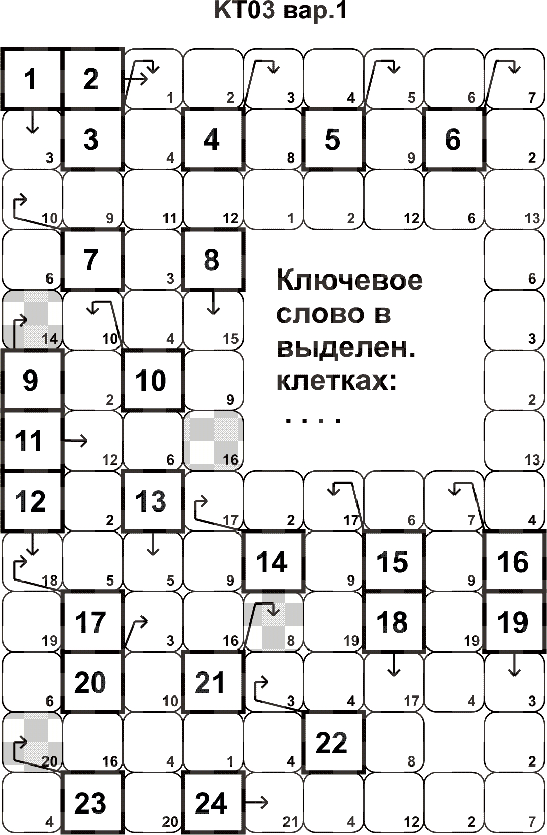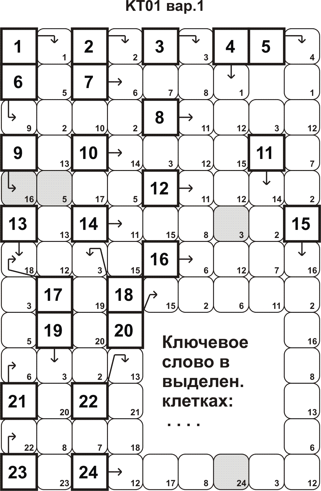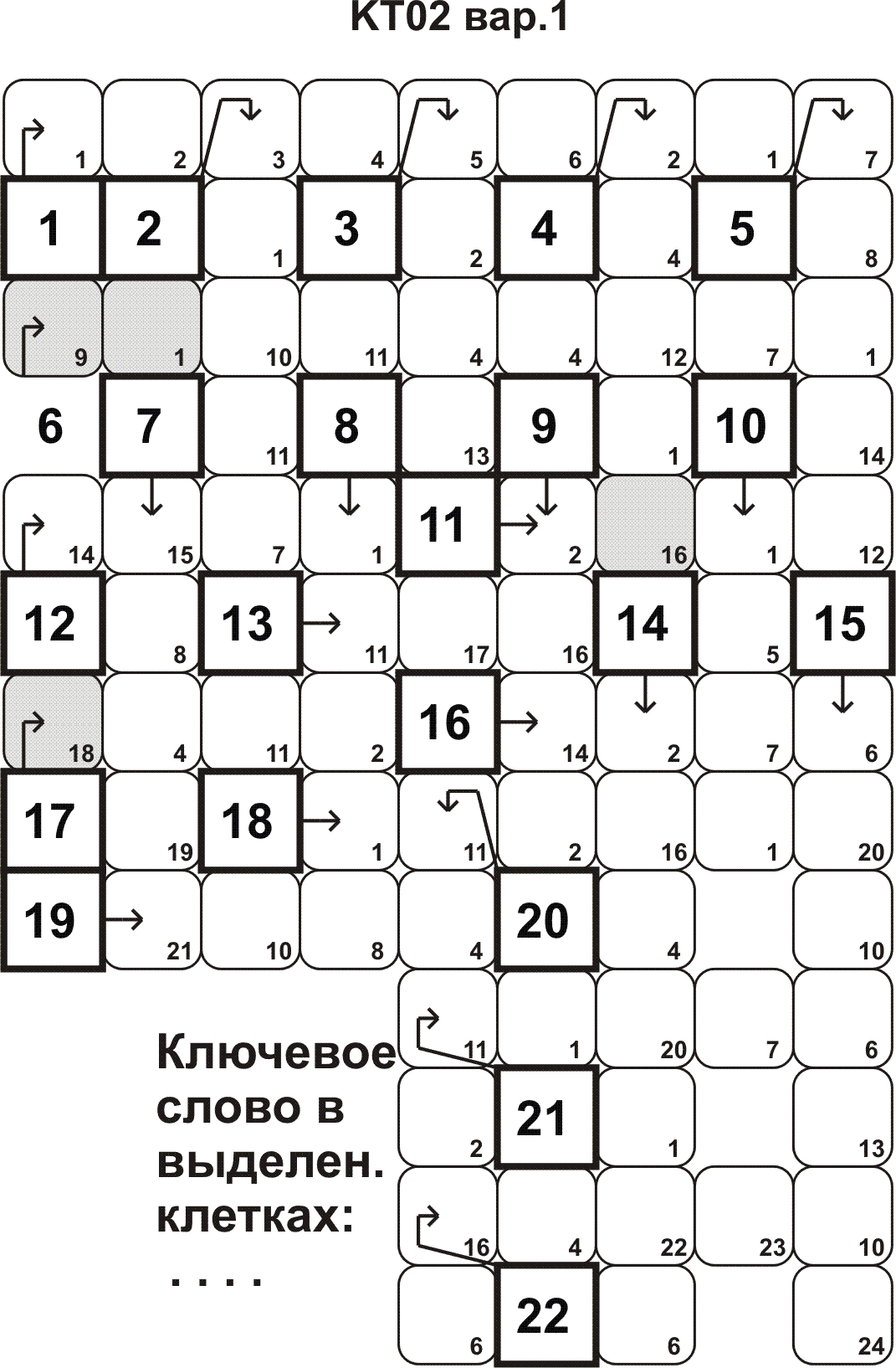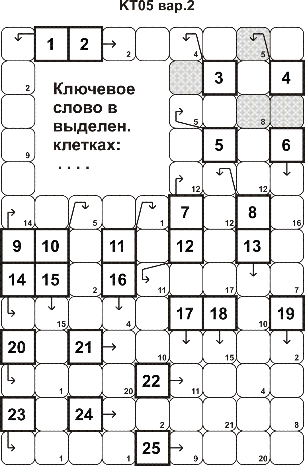 ..СТРЕЛКИ (СТРЕЛочные Кроссворды) – сканворд с описаниями под.номерами. Нужно решить и определить контрольное слово из букв в выделенных клетках.
