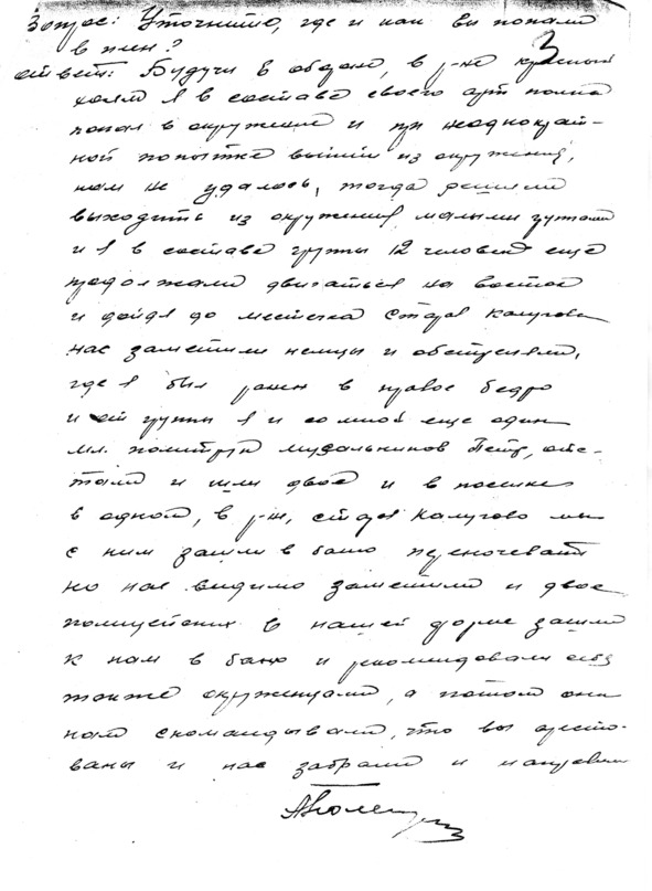 Опросный лист №38371. Сталиногорский проверочно-фильтрационный лагерь ГУКР «Смерш» №283. На последней странице – удостоверяющая подпись отца. 1944 г.