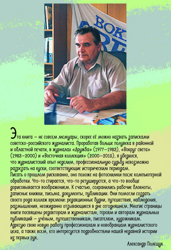 И всё же я, вопреки предостережению поэта Геннадия Шпаликова, отправляюсь в путешествие по местам профессии, где случились истории, оставившие след в памяти и слове…