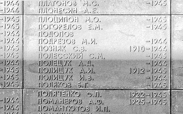В Лиепае мы разыскали военкомат. Приветливый майор, которому, видимо, было поручено заниматься увековечением памяти погибших на территории района, показал нам несколько толстых книг в самодельных переплётах. С замиранием сердца взял я в руки том на букву «П». Ближе и ближе нужное сочетание первых букв – и вот Полещуки и Полищуки предстали передо мной. Но отца среди них не было.