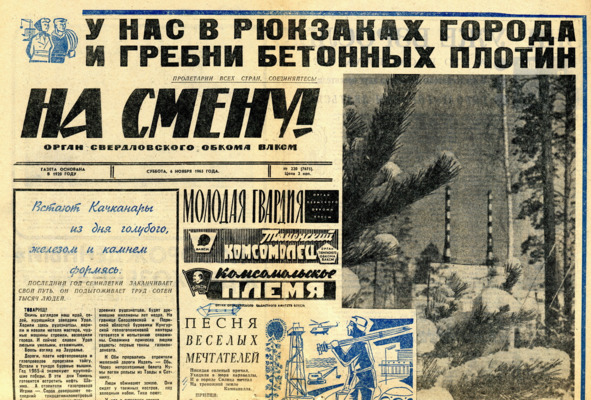 За четыре года работы в «На смену!» мне удалось немало поездить по промышленным центрам, большим и малым предприятиям и стройкам Среднего Урала. Командировки давали возможность прервать однообразное течение редакционной жизни (планёрки, сбор информации по телефону, обработка материалов авторов, вычитка гранок, дежурства по номеру) и побывать в незнакомых местах, занести в блокнот новые впечатления. Моя рабочая территория, постепенно расширяясь, охватила Свердловск, Нижний Тагил, Асбест, Реж, Нижние Серги, Михайловск, Арти, Ревду, Первоуральск, Каменск-Уральский, Невьянск, Краснотурьинск, Карпинск, Камышлов, Гари, Североуральск…