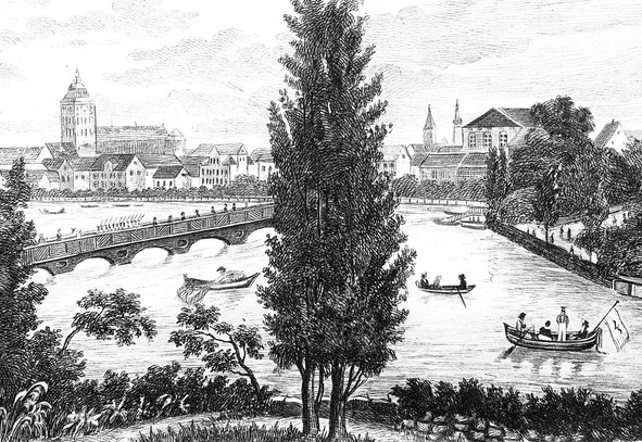 Восточная часть города состояла из Лёбенихта и Ломзе, одного из двух островов Кёнигсберга (второй – Кнайпхоф), лежащих между двумя руслами Прегеля. Оба русла соединялись в районе Гусь-крана.
