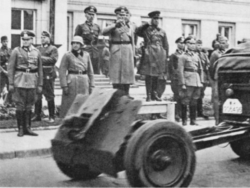 Слева: комбриг Кривошеин и закончивший советское танковое училище генерал-полковник Гудериан принимают совместный парад в поверженном польском Брест-Литовске (впоследствии ставшем известным как город – Герой Брест). Справа – карикатура во французской газете тех лет: «Вам молоток? Прошу!»
