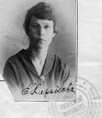Георгий Иванович и Елизавета Николаевна Харьковы. Снимки скопированы с документов. На фотографии дедушки – печать Революционного штаба города Саратова, на бабушкиной – печать Логического факультета МГУ