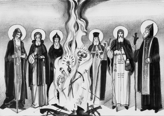 Наши русские художники-провидцы угадывали Святую Русь, которая открывалась во дни великих торжеств и великих русских скорбей. Барма и Постник, воздвигшие храм Василия Блаженного, напоминающий цветы из райского сада – это образ Святой Руси. И Нестеров, писавший Святую Русь, помещал среди схимников, отшельников и блаженных Гоголя, Достоевского и Толстого. А Петров-Водкин, написавший алого коня и золотого наездника среди лазурного озера, не он ли узрел Святую Русь в те годы, когда по земле мчались конные армии с окровавленными клинками? А великий провидец и мистик Александр Блок? Не он ли увидел «в белом венчике из роз» Христа, который шёл по голодному Петрограду, возглавляя отряд матросов?