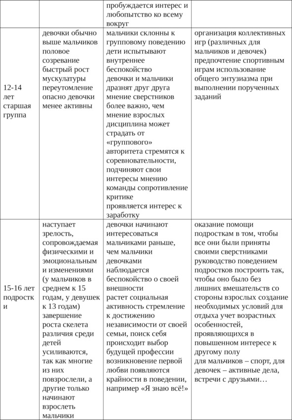 Напуганные и встревоженные активностью и энергичностью детей вожатые стремятся окружить их всевозможными запретами. Но нужно делать обратное. Подросткам надо показать разумные пути для претворения в жизнь их энергии. При этом им нужны любовь и понимание.