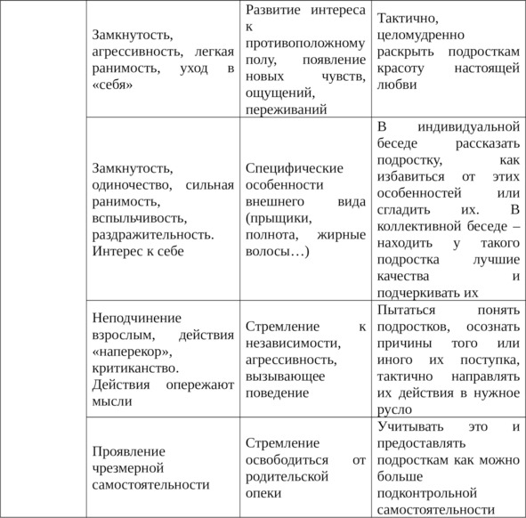 Нельзя быстро и без труда разрешить все проблемы подросткового возраста. И вожатому, и подростку, и родителям необходимо набраться терпения и научиться разговаривать друг с другом, обходя или «сглаживая» острые углы взаимоотношений.