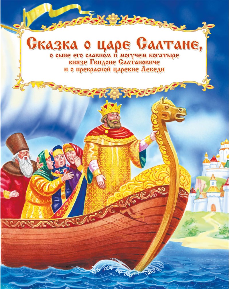 Три девицы под окномПряли поздно вечерком.«Кабы я была царица, —Говорит одна девица, —То на весь крещёный мирПриготовила б я пир».«Кабы я была царица, —Говорит её сестрица, —То на весь бы мир однаНаткала я полотна».«Кабы я была царица, —Третья молвила сестрица, —Я б для батюшки-царяРодила богатыря».Только вымолвить успела,Дверь тихонько заскрыпела,И в светлицу входит царь,Стороны той государь.Во всё время разговораОн стоял позадь забора;Речь последней по всемуПолюбилася ему.«Здравствуй, красная девица, —Говорит он, – будь царицаИ роди богатыряМне к исходу сентября.Вы ж, голубушки-сестрицы,Выбирайтесь из светлицы,Поезжайте вслед за мной,Вслед за мной и за сестрой:Будь одна из вас ткачиха,А другая повариха».В сени вышел царь-отец.Все пустились во дворец.Царь недолго собирался:В тот же вечер обвенчался.Царь Салтан за пир честнойСел с царицей молодой;А потом честные гостиНа кровать слоновой костиПоложили молодыхИ оставили одних.В кухне злится повариха,Плачет у станка ткачиха,И завидуют оне[12]Государевой жене.А царица молодая,Дела вдаль не отлагая,С первой ночи понесла.В те поры война была.Царь Салтан, с женой простяся,На добра-коня садяся,Ей наказывал себяПоберечь, его любя.Между тем, как он далёкоБьётся долго и жестоко,Наступает срок родин;Сына бог им дал в аршин,И царица над ребёнкомКак орлица над орлёнком;Шлёт с письмом она гонца,Чтоб обрадовать отца.А ткачиха с поварихой,С сватьей бабой Бабарихой,Извести её хотят,Перенять гонца велят;Сами шлют гонца другогоВот с чем от слова до слова:«Родила царица в ночьНе то сына, не то дочь;Не мышонка, не лягушку,А неведому зверюшку».Как услышал царь-отец,Что донёс ему гонец,В гневе начал он чудеситьИ гонца хотел повесить;Но, смягчившись на сей раз,Дал гонцу такой приказ:«Ждать царева возвращеньяДля законного решенья».Едет с грамотой гонец,И приехал наконец.А ткачиха с поварихой,С сватьей бабой Бабарихой,Обобрать его велят;Допьяна гонца поятИ в суму его пустуюСуют грамоту другую —И привёз гонец хмельнойВ тот же день приказ такой:«Царь велит своим боярам,Времени не тратя даром,И царицу и приплодТайно бросить в бездну вод».Делать нечего: бояре,Потужив о государеИ царице молодой,В спальню к ней пришли толпой.Объявили царску волю —Ей и сыну злую долю,Прочитали вслух указ,И царицу в тот же часВ бочку с сыном посадили,Засмолили, покатилиИ пустили в Окиян —Так велел-де царь Салтан.В синем небе звезды блещут,В синем море волны хлещут;Туча по небу идёт,Бочка по морю плывёт.Словно горькая вдовица,Плачет, бьётся в ней царица;И растет ребёнок тамНе по дням, а по часам.День прошёл, царица вопит…А дитя волну торопит:«Ты, волна моя, волна!Ты гульлива и вольна;Плещешь ты, куда захочешь,Ты морские камни точишь,Топишь берег ты земли,Подымаешь корабли —Не губи ты нашу душу:Выплесни ты нас на сушу!»И послушалась волна:Тут же на берег онаБочку вынесла легонькоИ отхлынула тихонько.Мать с младенцем спасена;Землю чувствует она.Но из бочки кто их вынет?Бог неужто их покинет?Сын на ножки поднялся,В дно головкой уперся,Понатужился немножко:«Как бы здесь на двор окошкоНам проделать?» – молвил он,Вышиб дно и вышел вон.Мать и сын теперь на воле;Видят холм в широком поле,Море синее кругом,Дуб зелёный над холмом.Сын подумал: добрый ужинБыл бы нам однако нужен.Ломит он у дуба сукИ в тугой сгибает лук,Со креста снурок[13] ш