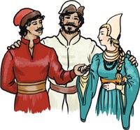 Сват – раньше о свадьбе между девушкой и молодым человеком договаривались их родители. В этом им помогал сват, который представлял жениха и его родителей.