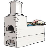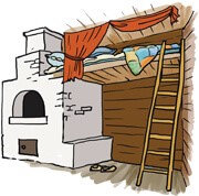 Печь с лежанкой – в богатых домах печку делали большую, сбоку была часть, похожая на широкую лавку. Это и была лежанка. Когда печь топили, она становилась тёплой. На нее стелили шкуры или шубы, там можно было спать.