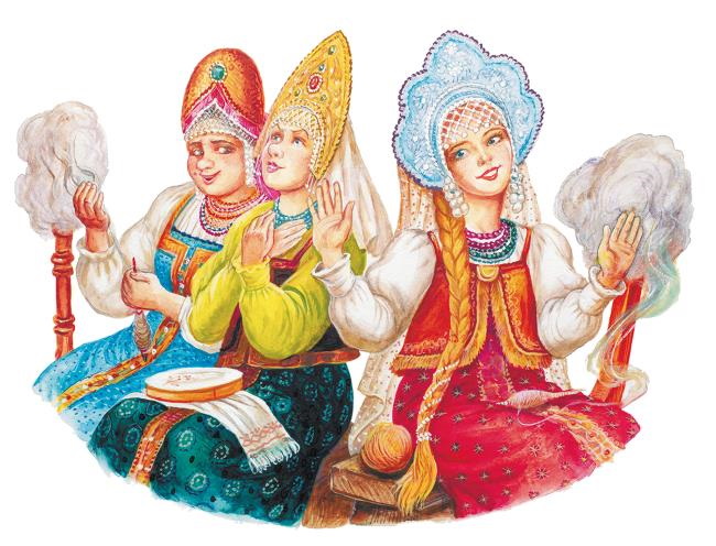 Три девицы под окномПряли поздно вечерком.«Кабы я была царица, —Говорит одна девица, —То на весь крещёный мирПриготовила б я пир».– «Кабы я была царица, —Говорит её сестрица, —То на весь бы мир однаНаткала я полотна».– «Кабы я была царица, —Третья молвила сестрица, —Я б для батюшки-царяРодила богатыря».