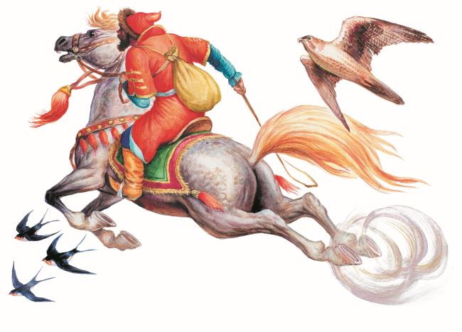 Князь им вымолвил тогда:«Добрый путь вам, господа,По морю по ОкиянуК славному царю Салтану;От меня ему поклон».Гости в путь, а князь ГвидонС берега душой печальнойПровожает бег их дальный;Глядь – поверх текучих водЛебедь белая плывёт.«Здравствуй, князь ты мой прекрасный!Что ты тих, как день ненастный?Опечалился чему?» —Говорит она ему.Князь печально отвечает:«Грусть-тоска меня съедает,Одолела молодца:Видеть я б хотел отца».Лебедь князю: «Вот в чём горе!Ну, послушай: хочешь в мореПолететь за кораблём?Будь же, князь, ты комаром».И крылами замахала,Воду с шумом расплескалаИ обрызгала егоС головы до ног всего.Тут он в точку уменьшился,Комаром оборотился,Полетел и запищал,Судно нá море догнал,Потихоньку опустилсяНа корабль – и в щель забился.