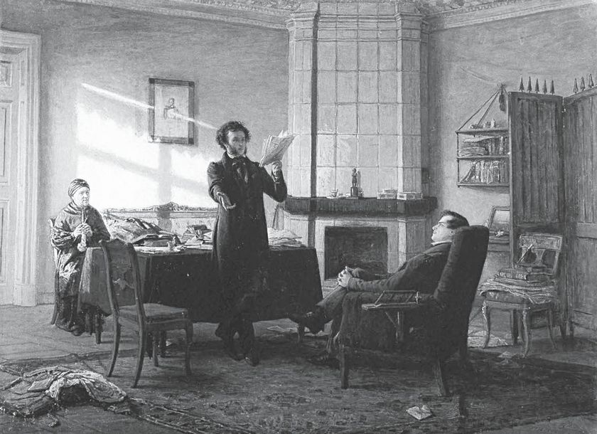 Осенью, в ноябре, Михайловское покинули члены его семейства, проводившие лето в деревне, сначала брат и сестра, а потом родители, и Пушкин остался здесь один; только няня Арина Родионовна оставалась с ним и скрашивала как могла его одиночество. Конечно, развеять тоску по Одессе, где остались друзья, море, любимая женщина, итальянская опера, блеск юга, тепло, она не могла, но занимала его как умела.
