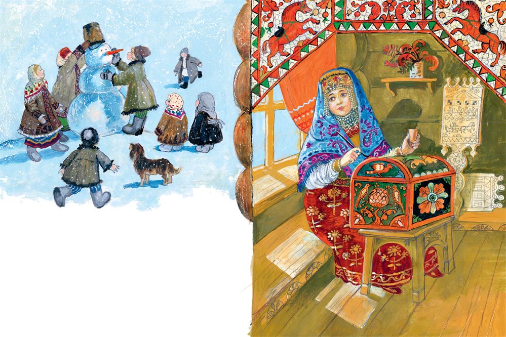 – Пойдём, – согласилась Марья. – Но давай слепим не бабу, а доченьку – Снегурочку.