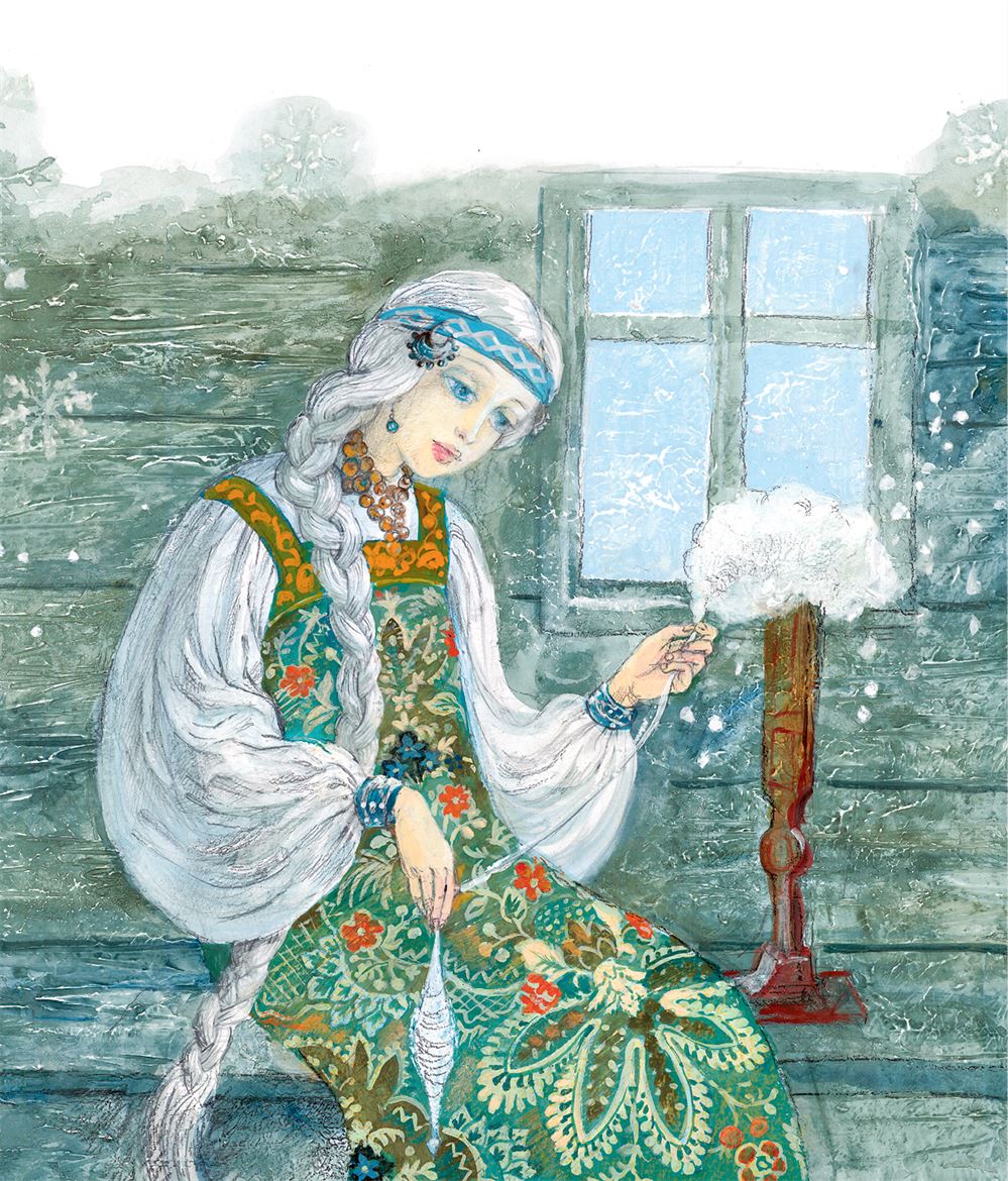 И стала у них расти девочка-Снегурочка не по дням, а по часам. Весёлая, приветливая, пригожая. Глаза у неё голубые, коса русая до пояса, голосок звонкий, как песню запоёт – заслушаешься. А как заботлива! Во всём помочь старается. Делает всё толково, охотно, с улыбкой. Работа у неё в руках так и спорится. За зиму она сильно выросла. Не нарадуются Иван с Марьей, глядя на Снегурочку.