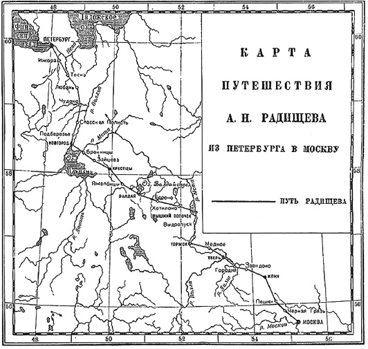 Карта путешествия Радищева из Петербурга в Москву[4]
