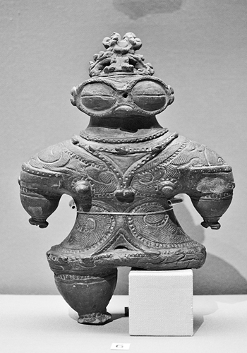 Во-вторых, они больше не довольствуются глиной как основным материалом. Ей на смену приходят железные и бронзовые изделия, появляются новые формы и виды предметов: мечи, колокола, зеркала. А глиняные сосуды начинают теперь обжигать при более высокой температуре, и они становятся более прочными и долговечными. Только вот выглядят они теперь гораздо проще, без огненных чаш и причудливых орнаментов. Так материковые технологии и знания пришли на смену яркой первобытной экспрессии.