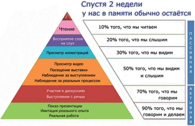 Известный американский педагог Эдгар Дейл долгое время исследовал процессы обучения, восприятия и запоминания информации.