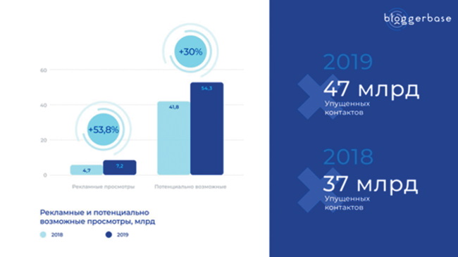 Учитывая общий рост количества видео за 2019 год, доля потенциального видео для рекламы составляет 48,5 %.