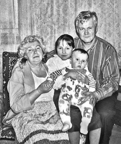 Мы с Инной и нашими внуками Настей и новорожденным Федей. Матвеевское