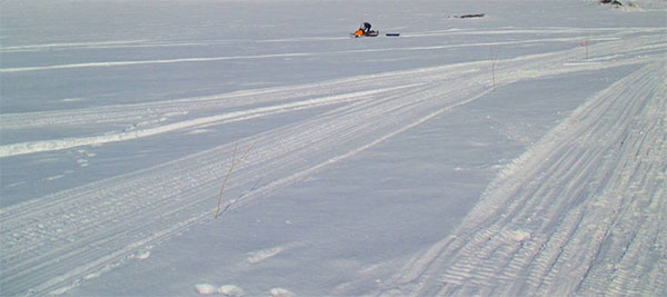 вали́ться – проваливаться в глубокий снег. При этом, интересно возможное применение этого глагола – говоря об одном и том же, можно сказать: «ну куда ты собрался в такую пору – снегоход-то валится…», а можно: «куда собрался, снег-то валится…» или: «дорога валится…»