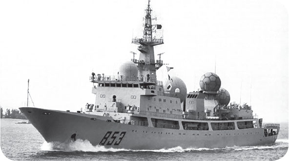 Корабль радиоэлектронной разведки ВМС Китая. Политика экспансии любого государства строится на прослушке эфира, так как в современных условиях агентурным путем добыть стратегическую информацию невозможно.