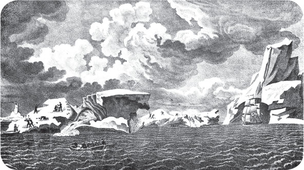 Павел Михайлов. Вид ледяных островов. Иллюстрация из атласа Беллинсгаузена. Санкт-Петербург, 1831 год.