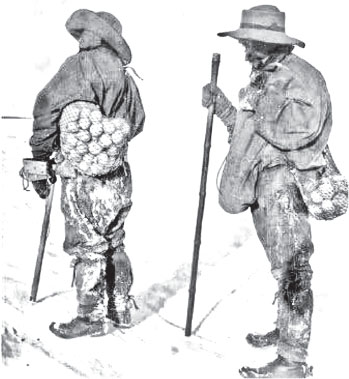 Экспедиция Р. Скотта готовится к Пасхе, в сетках яйца пингвинов, Антарктида, 1901 г.