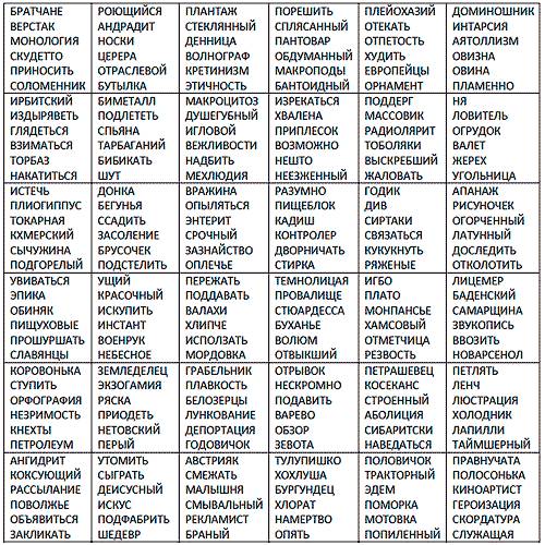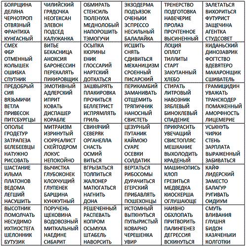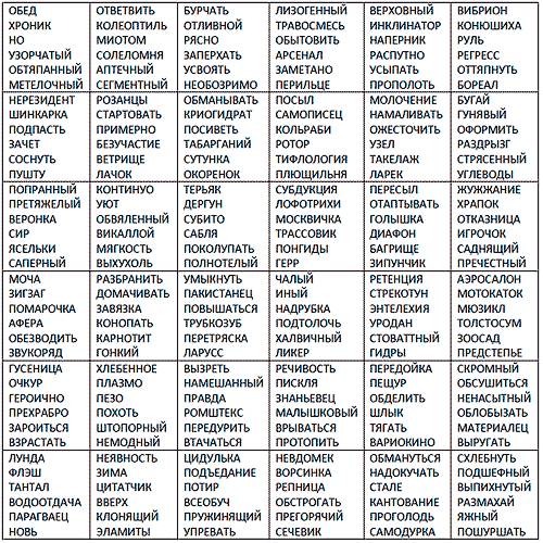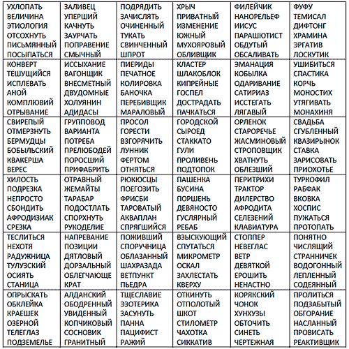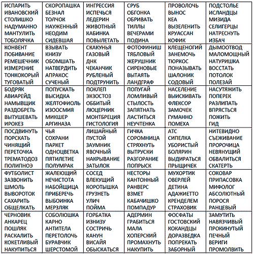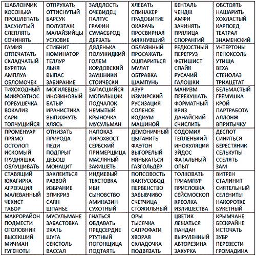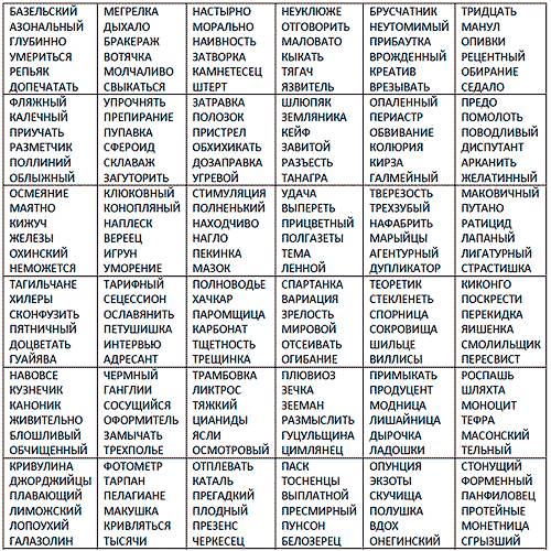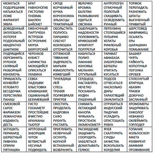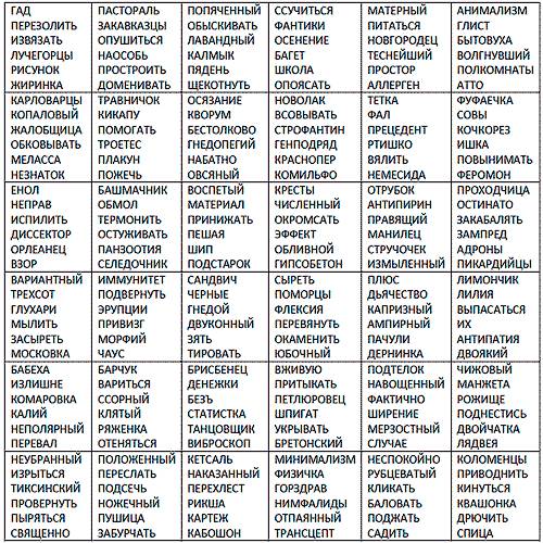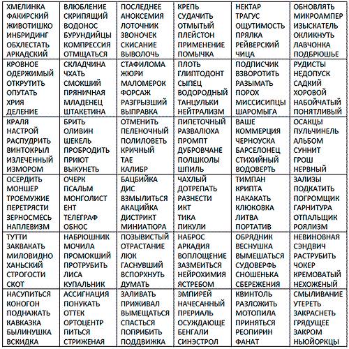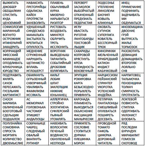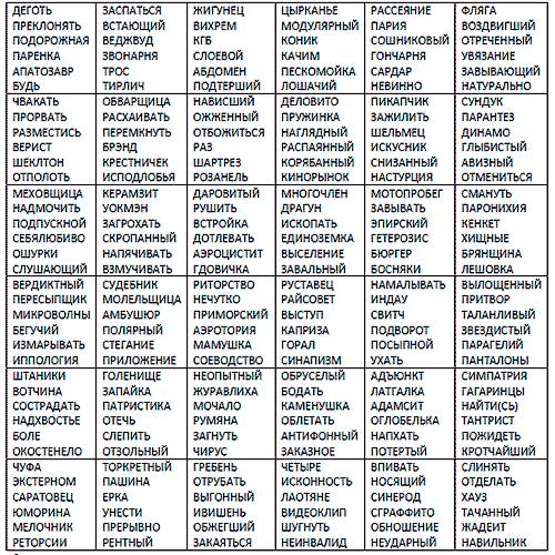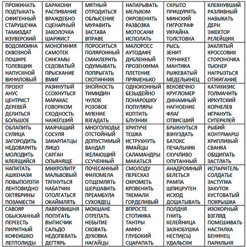 Аналогичным методом бросания костей выберете на выбранной странице ячейку с вариантами слов.
