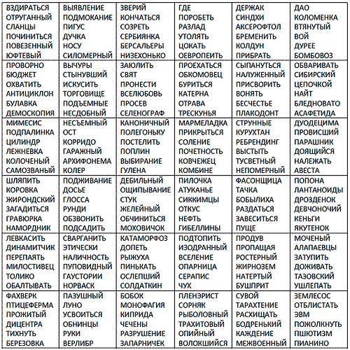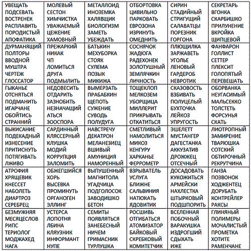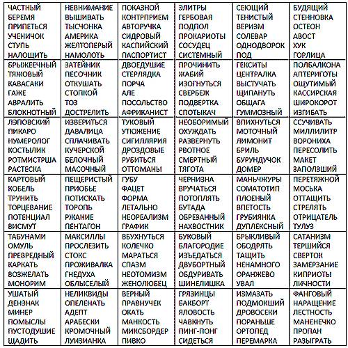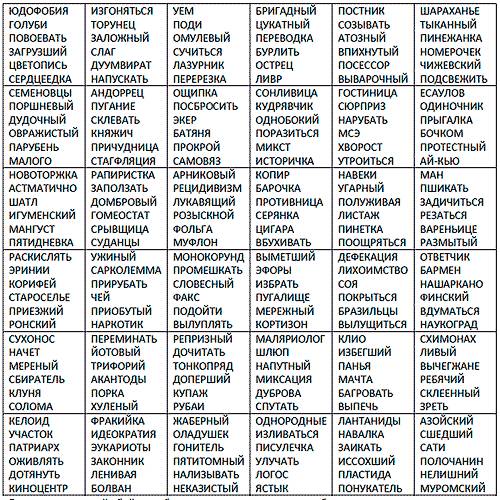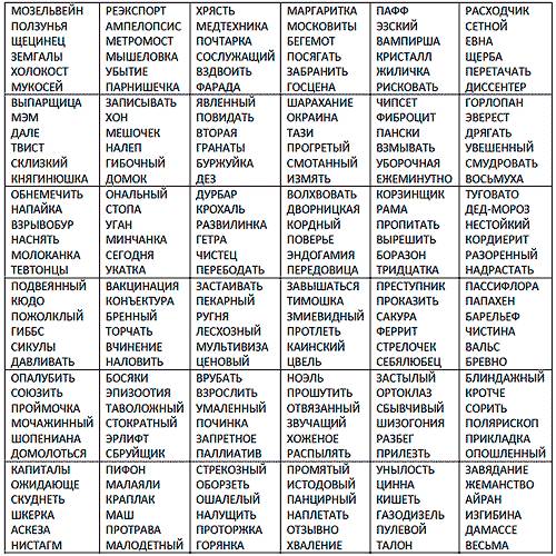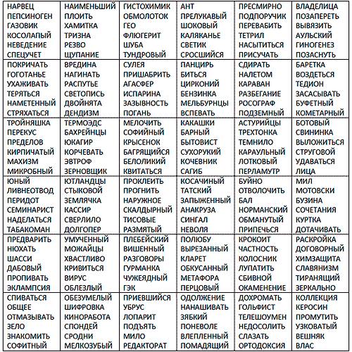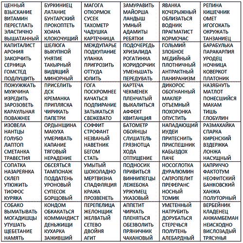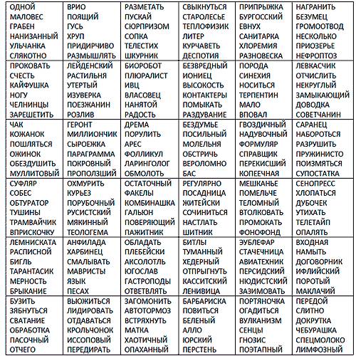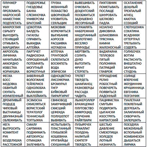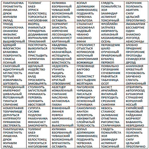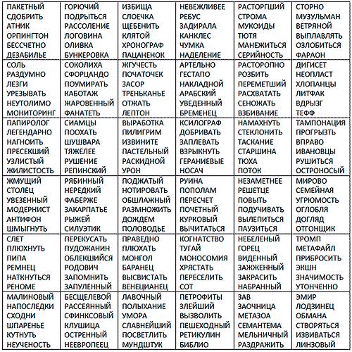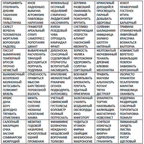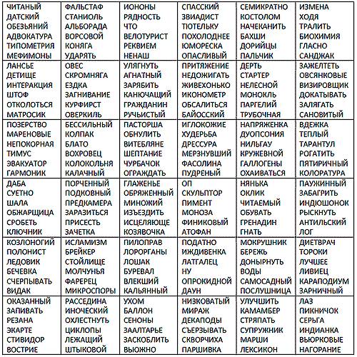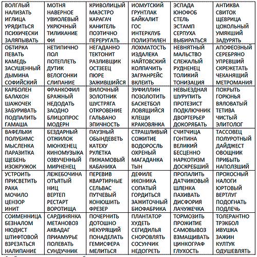 Аналогичным методом бросания костей выберете на выбранной странице ячейку с вариантами слов.