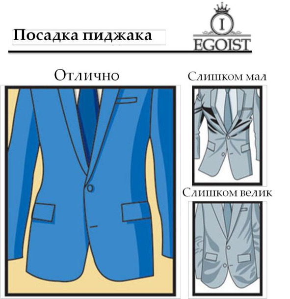Выше мы говорили про длину пиджака – если пиджак приталенный, из стилей Smart Casual или Business Casual, то они могут не закрывать ягодицы полностью. В этом случае критерий правильной посадки – рукав и шов плеча. Ты уже знаешь правильные ответы – пара сантиметров манжет и шов по косточке плеча. Не нужно пытаться визуально увеличить плечи, выбирая пиджак на размер больше – ты произведёшь откровенно обратный эффект, а вот в пиджаке нужного размера будешь неотразим.