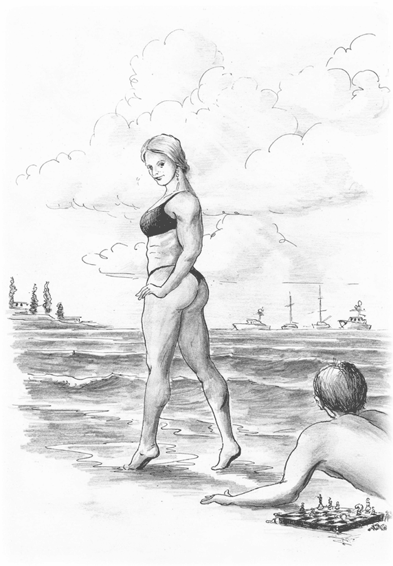 Витька снял рубашку и сел под зонт напротив Горста. Тот протянул ему руки с зажатыми в кулаках фигурками. Шишкеев недолго думая шлепнул по правой, кулак раскрылся, и на ладони оказалась черная пешка.