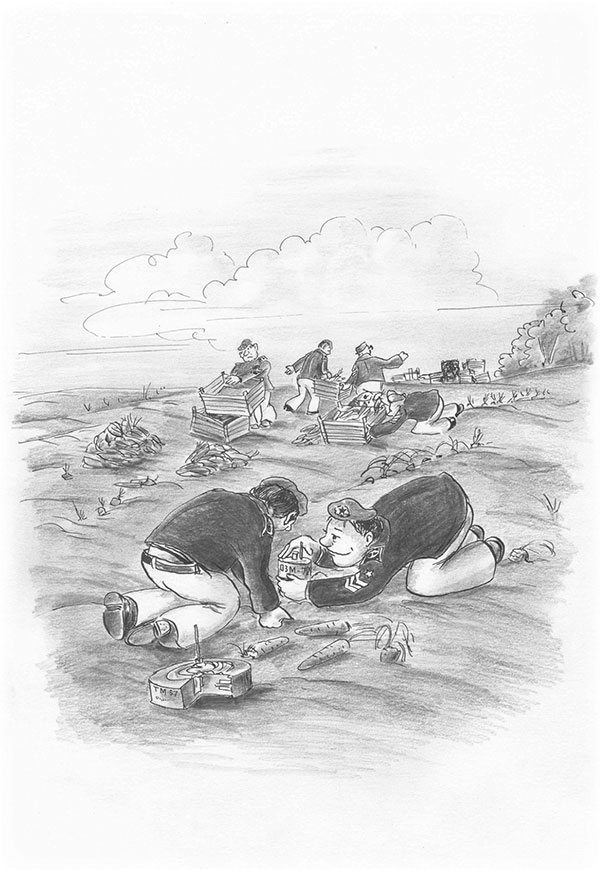 Проворачивать фокус с минами сразу было нельзя, нужно было поработать хотя бы часок и углубиться подальше в поле. Погода портилась на глазах, небо потемнело, сеял мелкий дождь.