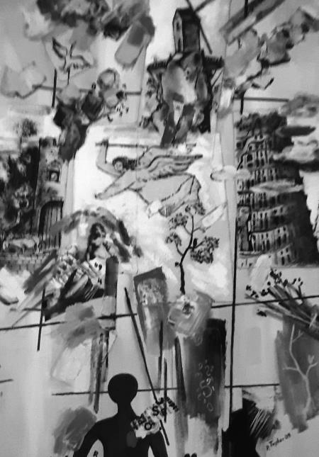 Молчишь уже который час.Хотя бы нарисуй, когда соврать не смеешь.Бывает часто так со мною тоже.Говорить о себе неохота.Вот блокнот, карандаш.Набросай, всё жерисунок подслушать нельзя. Переходас небес – да, такого события я не слыхал.Кто бы мне рассказал,что в природе встречается ангел?Кто б поверил!Видишь, как я живу? Вот вчера рисовал,а всего-то пошёл перемеритьподрамник к холсту,но увидел узор. Воображеньемведома рука, в подсознанье скользя,вдруг сама набросала портрет.Так под ветром порыва, трепещет листвана прямом освещенье,и бегущие тени её чередуют рисунки коней и карет.Их перемещеньена стене выявляет то черты, то фигуры,то безумные сцены, то просто слова.Будто кто-то случайно всё подряд подбирает с натуры,чтобы кистью с размаха на стен кирпичи…Адель:
