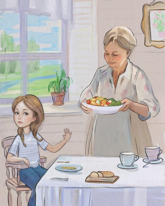 – Бабушка, я не хочу салат, я не люблю овощи, – сказала Маша, – их надо солить, слегка поливать растительным маслом, а мне больше нравятся фрукты и ягоды!
