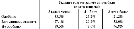 Зато возраст используемого автомобиля оказывает значительное влияние на отношение респондента к реформе техосмотра. По новому закону, владельцам, новых машин, возраст которых не превышает трех лет начиная с года выпуска (а это 29 % среди всех опрошенных), проходить техосмотр не нужно. Владельцам автомобилей, возраст которых составляет от трех до семи лет (30 % среди всех опрошенных), нужно будет проходить техосмотр раз в два года, а вот владельцам машин старше семи лет (36 % среди всех опрошенных) придется проходить техосмотр каждый год.