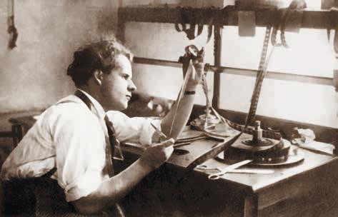 Режиссер С.М. Эйзенштейн за монтажным столом. 1928. [ГЦМК]
