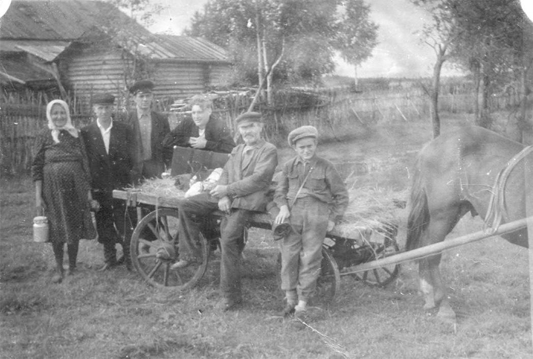 В Новоселовском. На заднем плане слева бабушка Олимпиада, справа сводный брат отца Михаил Душин