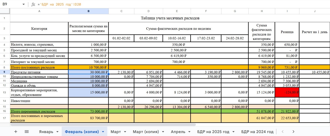 Теперь посмотрим, как выглядят месячные отчеты, заполненные по методу “отсечки”. Начнем сразу с отчета за Февраль 2025 года, поскольку в Январе ничего не меняется.