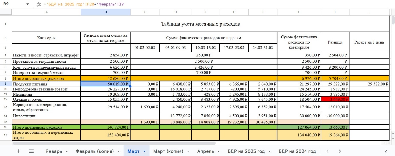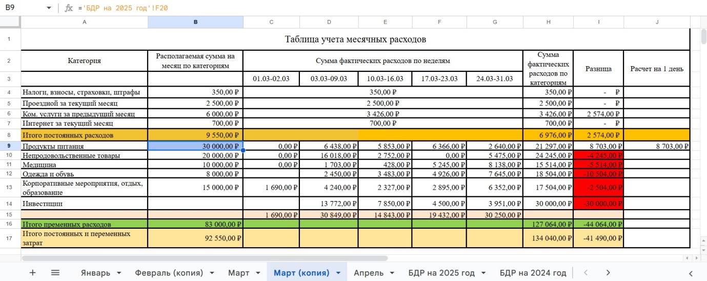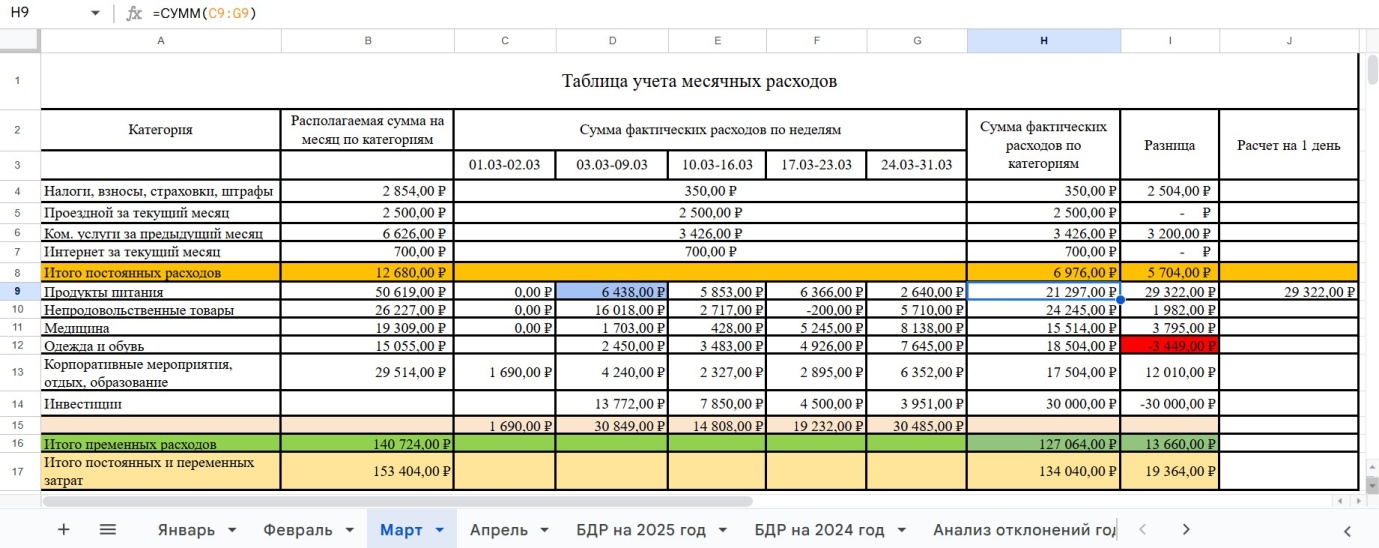 Перед Вами уже знакомая таблица за Март 2025 года.